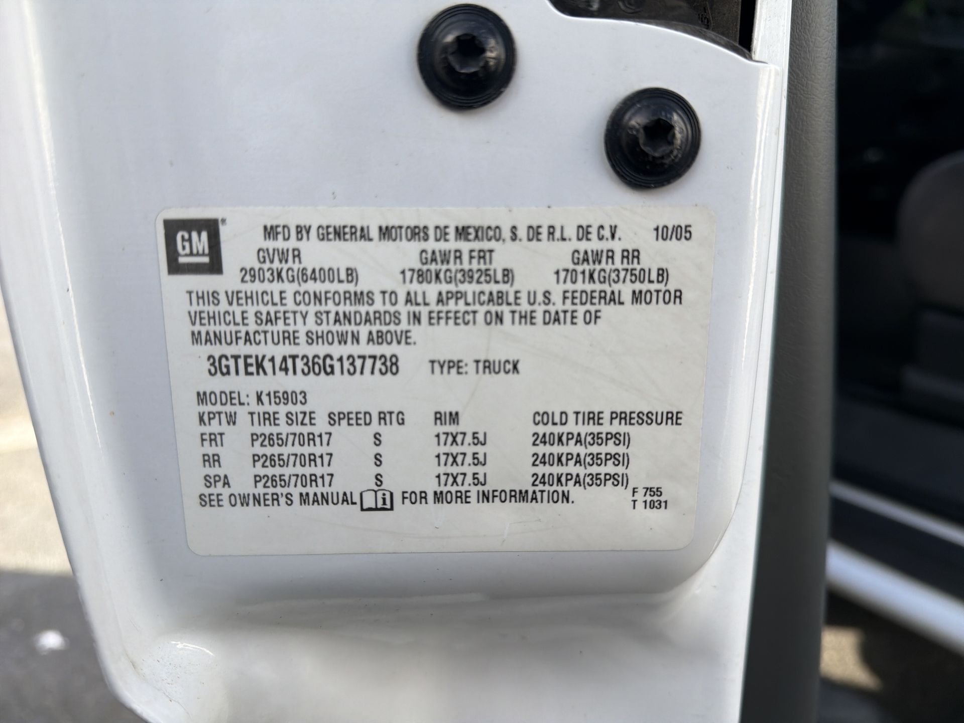 VIN: 3GTEK14T36G137738 | Stock #: 4P5163A